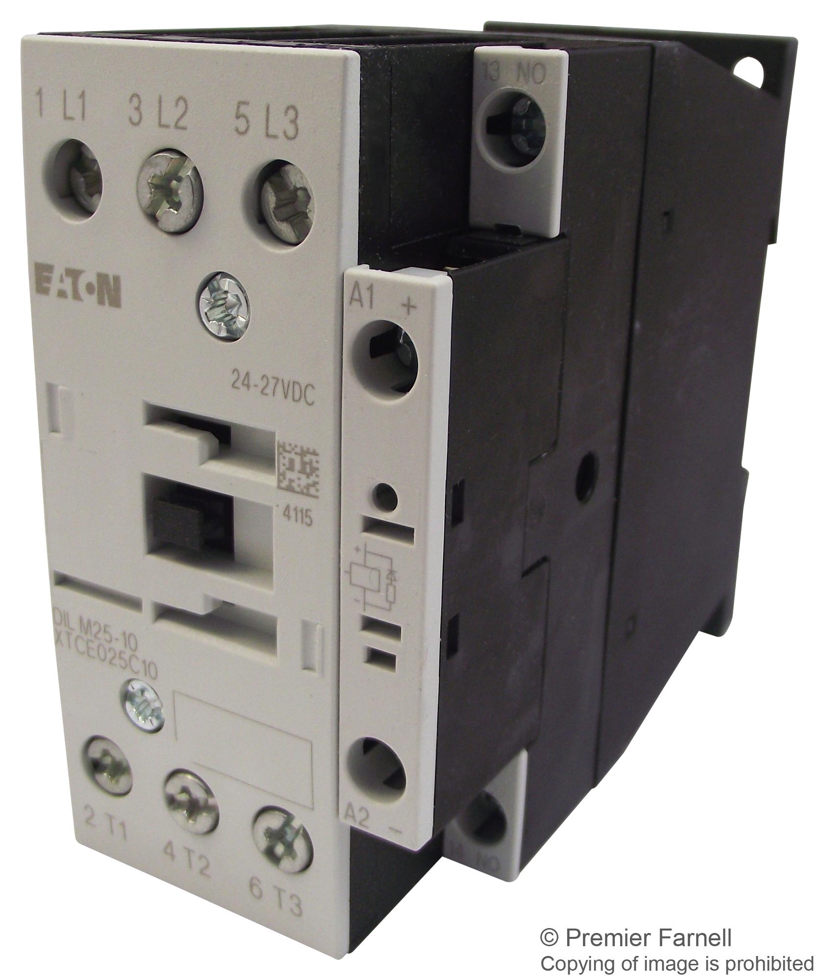 EATON MOELLER - DILM25-10(RDC24) - Контактор, DIN-рейка, Панель, 690 В AC, SPST-NO, 3-полюсный, 14 кВт