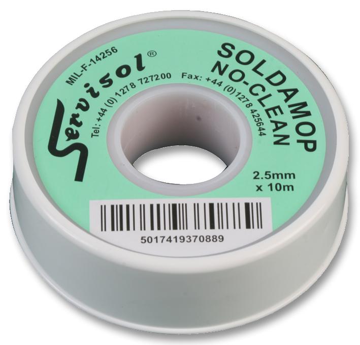 SERVISOL - 200004375 - Демонтажная оплетка, Soldamop®, не требует очистки, бескислородная медь, 2.5мм x 10м